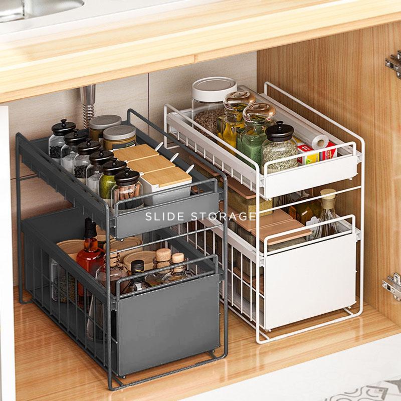 Amazon Co Jp シンク下引出しラック ランドリー収納 キッチン収納ラック 調味料収納棚 スライド式収納ラック 引き出し式収納 ホーム キッチン